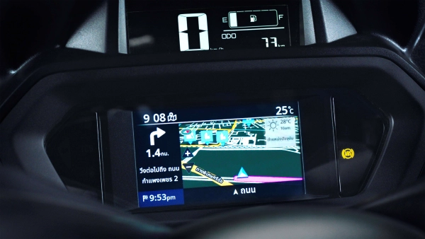 NEW XMAX CONNECTED ยังเหนือชั้นด้วย GARMIN NAVIGATION SYSTEM ระบบนำทางในการขับขี่ ฟังก์ชันสำหรับการเดินทางที่สะดวกสบาย เพียงเชื่อมต่อ Y-Connect แล้วใช้แอปพลิเคชัน Garmin Street Cross ค้นหาสถานที่ กำหนดปลายทาง และเลือกเส้นทางบนสมาร์ทโฟน ระบบนำทางจะแสดงบนหน้าจอแสดงผล TFT เพื่อรองรับการเดินทางของผู้ใช้โดยไม่มีค่าบริการ โดยสามารถซูมแผนที่เส้นทางเข้าออก หรือปรับเปลี่ยนมุมมองได้โดยใช้สวิตช์บนแฮนด์ด้านซ้ายในการควบคุม ซึ่งสามารถดูข้อมูลต่างๆ ได้ดังนี้