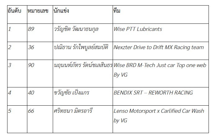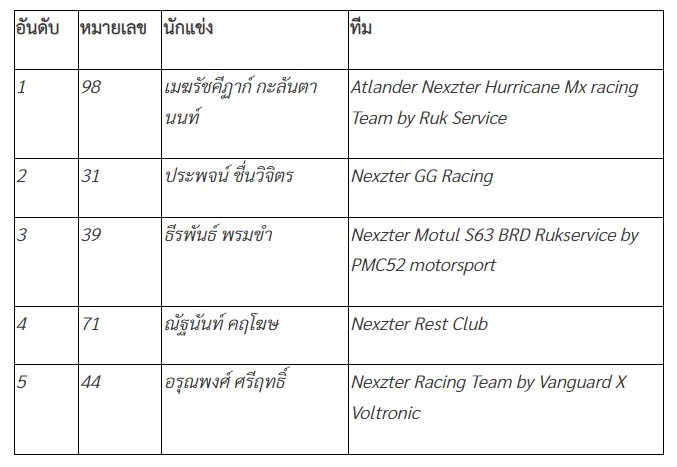 ผลการเเข่งขัน HILUX REVO One Make Race (แข่งขัน 20 รอบ)