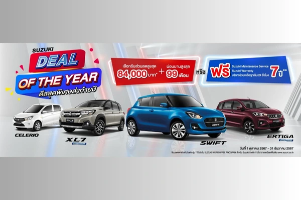 “SUZUKI DEAL OF THE YEAR ดีลสุดพิเศษส่งท้ายปี” เริ่มตั้งแต่วันนี้ 1 ตุลาคม-31 ธันวาคม 2567 มีรายละเอียดดังนี้