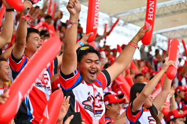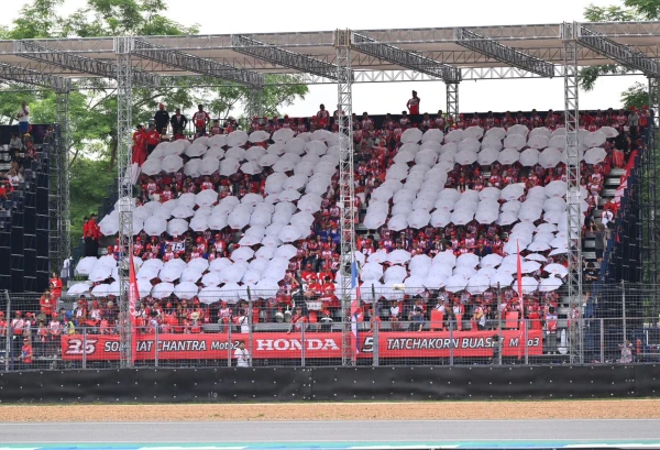 ”จันทรา สแตนด์“ และ “ฮอนด้า สแตนด์ ” สร้างปรากฏการณ์กองเชียร์อย่างยิ่งใหญ่ เต็มรูปแบบสู่สายตาชาวโลก รวมพลังแฟนชาวไทยส่งพลัง แรงใจ ให้ 2 นักบิดไทย ทั้ง “ก้อง-สมเกียรติ” และ “ก๊องส์-ธัชกร” พร้อมอุปกรณ์เชียร์ครบมือ ด้วยการโชว์ปล่อยธงชาติไทยผืนยักษ์ และป้ายสีแปลอักษร พร้อมเทคนิคการกางร่มสลับสีเป็นหมายเลข 35 ของ “ก้อง” สมเกียรติ จันทรา ยอดนักบิดฮีโร่ชาวไทยในรุ่นโมโตทู จาก อิเดมิตสึ ฮอนด้า ทีม เอเชีย และ “ก๊องส์” ธัชกร บัวศรี ดาวรุ่งนักบิดไทยในรุ่นโมโตทู เจ้าของหมายเลข 5 จาก ฮอนด้า ทีม เอเชีย