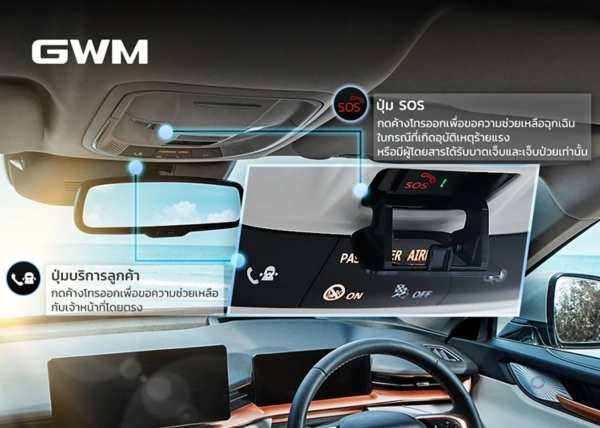 โดยเฉพาะอย่างยิ่งกับ 2 ปุ่ม ทั้ง ปุ่ม SOS และ ปุ่ม Call Center ที่ช่วยเหลือและสามารถช่วยกู้สถานการณ์ฉุกเฉินได้อย่างทันท่วงที โดยทั้ง 2 ปุ่มนี้ คือนวัตกรรมที่ถูกติดตั้งไว้ในรถยนต์พลังงานใหม่ของ เกรท วอลล์ มอเตอร์ ทุกคัน โดย ปุ่ม SOS จะเป็นการกดโทรออกเพื่อขอความช่วยเหลือในกรณีฉุกเฉิน หรือในกรณีเกิดอุบัติเหตุร้ายแรงจนถุงลมนิรภัยแตก โดยระบบจะแจ้งพิกัดของตัวรถไปยังหน่วยงานฉุกเฉินทันที เพื่อให้เจ้าหน้าที่ได้เข้าไปช่วยเหลือผู้ขับขี่และผู้โดยสารได้อย่างทันท่วงที นอกจากนี้ยังมาพร้อม ปุ่ม Call Center หรือปุ่มบริการลูกค้า ที่ผู้ขับขี่สามารถกดโทรออกเพื่อขอความช่วยเหลือไปยังเจ้าหน้าที่ Call Center โดยตรง มอบความอุ่นใจให้กับผู้ใช้งานรถยนต์พลังงานใหม่ของ เกรท วอลล์ มอเตอร์ มากยิ่งขึ้น