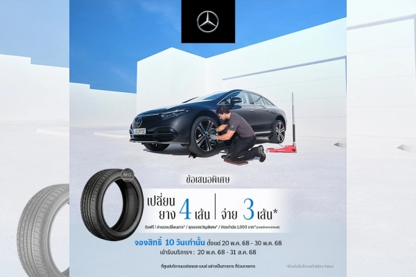 เมอร์เซเดส-เบนซ์ ประเทศไทย เอาใจลูกค้าเมอร์เซเดส-เบนซ์ ที่ต้องการเปลี่ยนยางรถยนต์เพื่อเตรียมพร้อมสำหรับการขับขี่ในทุกเส้นทางตลอดช่วงหน้าฝนนี้ นำเสนอแคมเปญบริการหลังการขายของผลิตภัณฑ์ในกลุ่ม MB Tires กับข้อเสนอสุดพิเศษ “เปลี่ยนยางฯ 4 เส้น จ่ายเพียง 3 เส้น*” สำหรับเจ้าของรถยนต์เมอร์เซเดส-เบนซ์ ทุกรุ่น ทุกช่วงอายุรถยนต์ เมื่อเข้ารับบริการเปลี่ยนยางรถยนต์พร้อมกัน 4 เส้น ณ ศูนย์บริการเมอร์เซเดส-เบนซ์ อย่างเป็นทางการ ที่เข้าร่วมรายการสำหรับแคมเปญดังกล่าว จำนวน 38 แห่ง โดยผลิตภัณฑ์ในกลุ่ม MB Tires เป็นยางรถยนต์คุณภาพสูงที่เมอร์เซเดส-เบนซ์ ร่วมพัฒนากับผู้ผลิตยางระดับโลกหลากหลายแบรนด์ เพื่อให้ครอบคลุมการใช้งานในทุกรูปแบบการขับขี่สำหรับรถยนต์ทุกเซกเมนต์ ตอกย้ำความมุ่งมั่นของแบรนด์ที่ต้องการมอบประสบการณ์การขับขี่ที่เหนือชั้นพร้อมกับความปลอดภัยขั้นสูงสุด