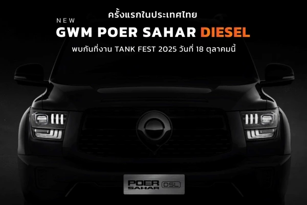 GWM (Thailand) เตรียมเผยโฉมรถกระบะพรีเมียมทางเลือกใหม่ด้วยขุมพลังดีเซล 2.4T กับ “NEW GWM POER SAHAR DIESEL” ครั้งแรกในประเทศไทย พร้อมแนวทางการตกแต่งใน 3 สไตล์เพื่อตอบโจทย์ไลฟ์สไตล์ที่หลากหลาย พร้อมเผยให้คนไทยได้ยลโฉมและสัมผัสตัวจริงในงาน TANK FEST 2025 and TOP RANK TANK MOD ระหว่างวันที่ 18 – 19 ตุลาคม 2568 นี้ ที่ ESC PARK รังสิต จังหวัดปทุมธานี ตั้งแต่เวลา 10.00 น. เป็นต้นไป